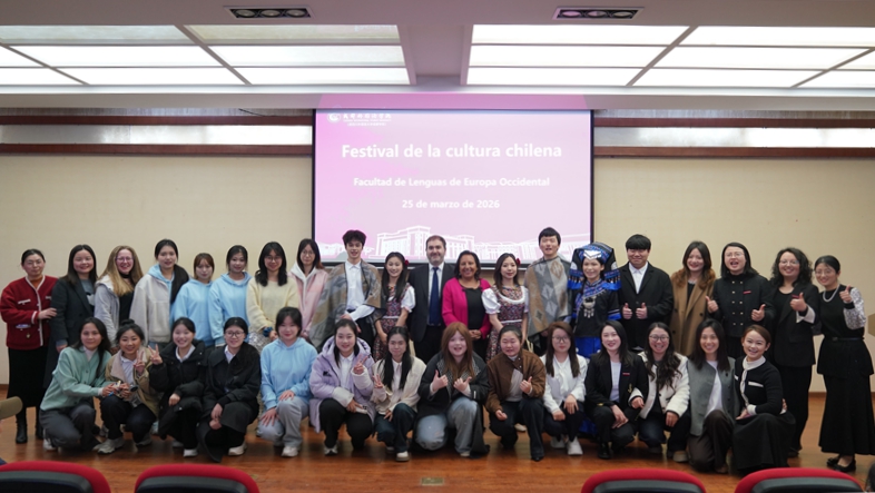 座谈结束后,克里斯蒂安·戴维斯总领事一行前往学术报告厅,出席由西欧语言学院主办的智利文化节活动,与我校西班牙语专业师生展开深入交流。克里斯蒂安·戴维斯总领事在致辞中充分肯定同学们的积极参与和出色表现,赞赏大家展现出的热情与专业素养,勉励大家珍惜学习机会、勤勉钻研,持续提升语言能力与跨文化视野,在学业与人生道路上不断追求卓越,并寄望同学们成为中智文化交流的青年使者,为促进两国友好贡献智慧与力量。我校西班牙语专业学生通过音乐、舞蹈、诗歌朗诵等丰富多彩的文艺节目,展现了扎实的专业素养与昂扬的青春风貌。同学们还向总领事一行赠送了精心准备的纪念礼物,现场气氛十分热烈。